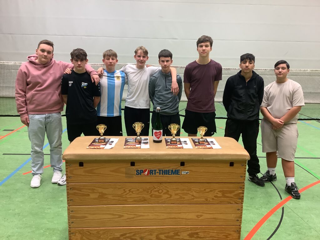 Siebzehn Doppel hatten sich fristgerecht zur Turnierteilnahme gemeldet. Nach einer 20-minütigen Einspiel- und Warmup-Phase wurde das Turnier auf fünf Turnierplätzen pünktlich gestartet. Der bewährte Austragungsmodus im doppelten KO – System ermöglichte dabei jedem angemeldeten Doppel eine einzige Niederlage, um dennoch in das Endspiel einzuziehen. Das Doppel Jonas/Leon aus der 9i2 sicherte sich diese Position, allerdings ohne eine einzige Niederlage zu erleiden, durch den überzeugenden Gewinn der Siegerrunde. Im Halbfinale bezwangen sie dabei Nando/Mosa aus der 9a und durften nun in Ruhe auf ihre Finalgegner warten, die nach einer wohlverdienten Mittagspause ab 14 Uhr ermittelt wurden. Leon/Lars 9i1, Jonas/Niklas 9i2 und Nando/Mosa 9a machten sich berechtigte Hoffnung, dieses hoch gesteckte Ziel zu erreichen. Im Viertelfinale setzten sich Leon/Lars gegen Jonas/Niklas durch und mussten direkt anschließend gegen die favorisierten Nando/Mosa antreten, gegen die sie in der Siegerrunde zuvor schon einmal verloren hatten. Diesmal kämpften sie sich bis in den entscheidenden dritten Satz, verloren aber denkbar knapp mit 18:21. Leon/Lars belegten somit vor Jonas/Niklas den dritten Platz.